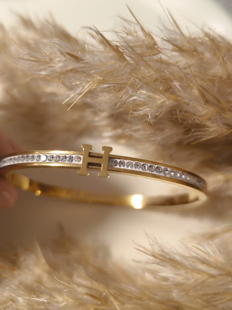 Unser Schmuck besteht aus hochwertigem Edelstahl und vergoldeten Elementen. Um den Glanz dauerhaft zu erhalten,vermeide Kontakt mit Wasser ,Parfüm , Cremes und Chemikalien. Lege den Schmuck vor dem Duschen, Sport oder Schlafen ab und bewahre ihn trocken auf. Zur Reinigung genügt ein weiches , trockenes Tuch.